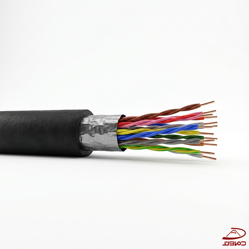 STP (Shielded Twisted Pair): این نوع کابل دارای یک لایه محافظ فلزی است که اطراف سیم‌ها را پوشانده و آن‌ها را از تداخلات خارجی محافظت می‌کند. کابل STP برای محیط‌هایی که نویز الکترومغناطیسی زیادی دارند، مانند کارخانه‌ها یا محیط‌های صنعتی، مناسب است.